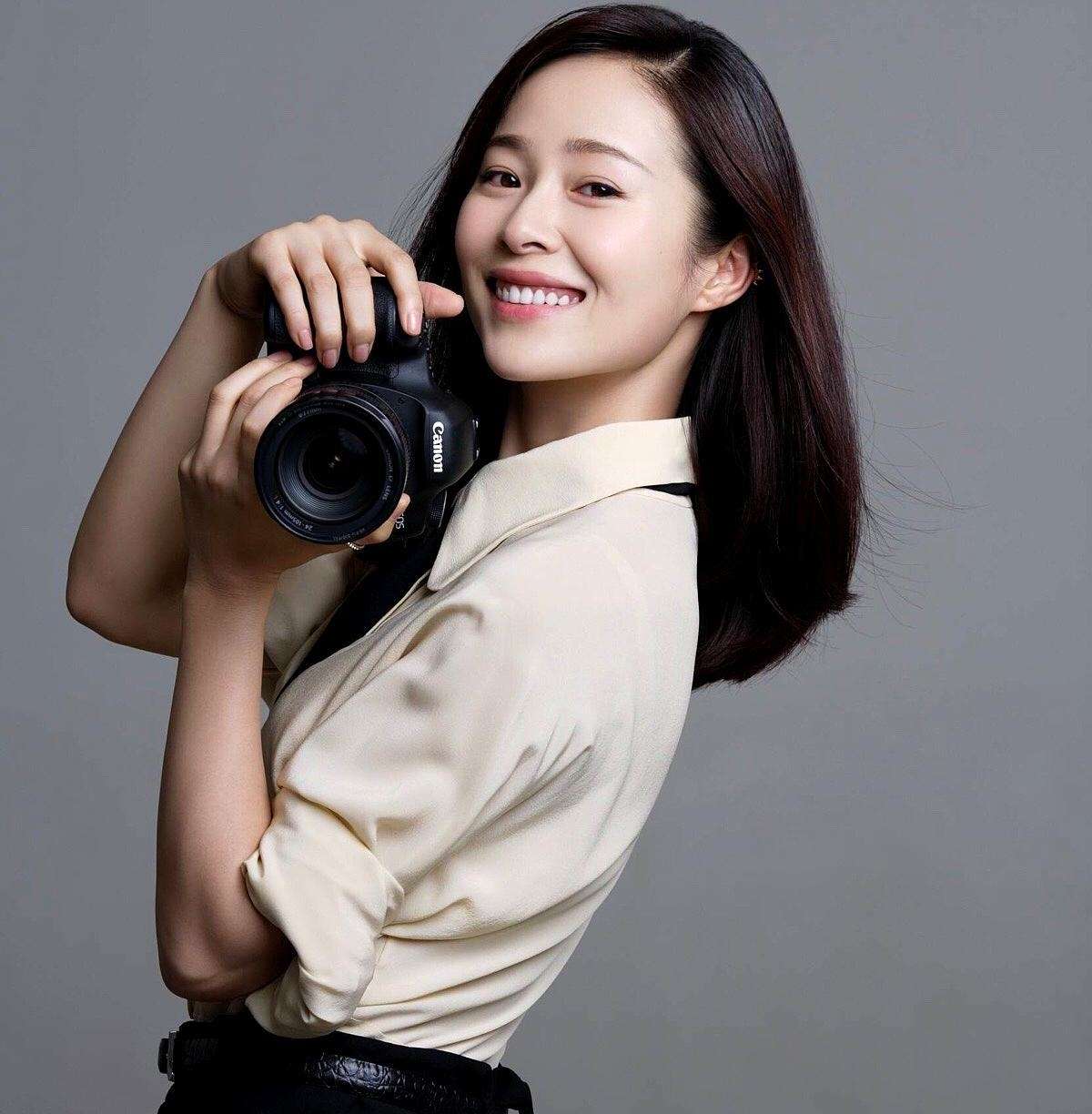 景甜 穿着白色的内搭和深蓝色牛仔裤,外面穿一件浅粉色的衬衫……__财经头条