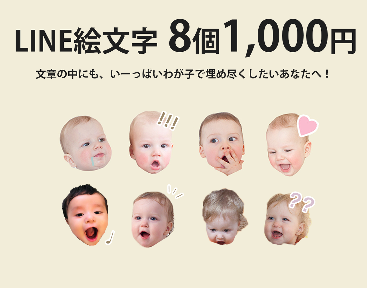 わが子をライン絵文字で埋め尽くします 子供、ペットなどのライン絵文字作ります。 | 写真の編集・加工 | ココナラ