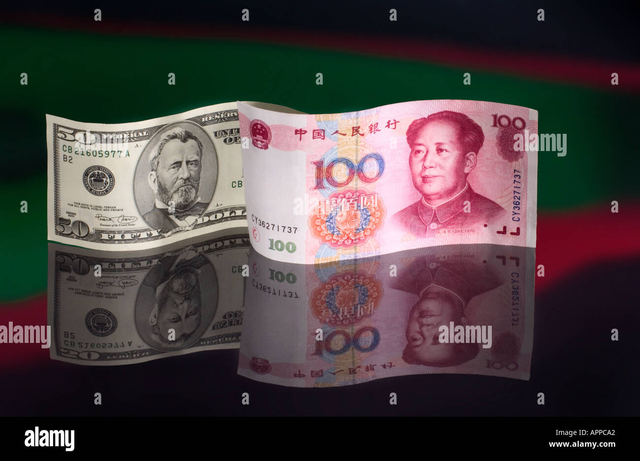 Dollar shape pegging concept. American and Chinese currency Stock Photo