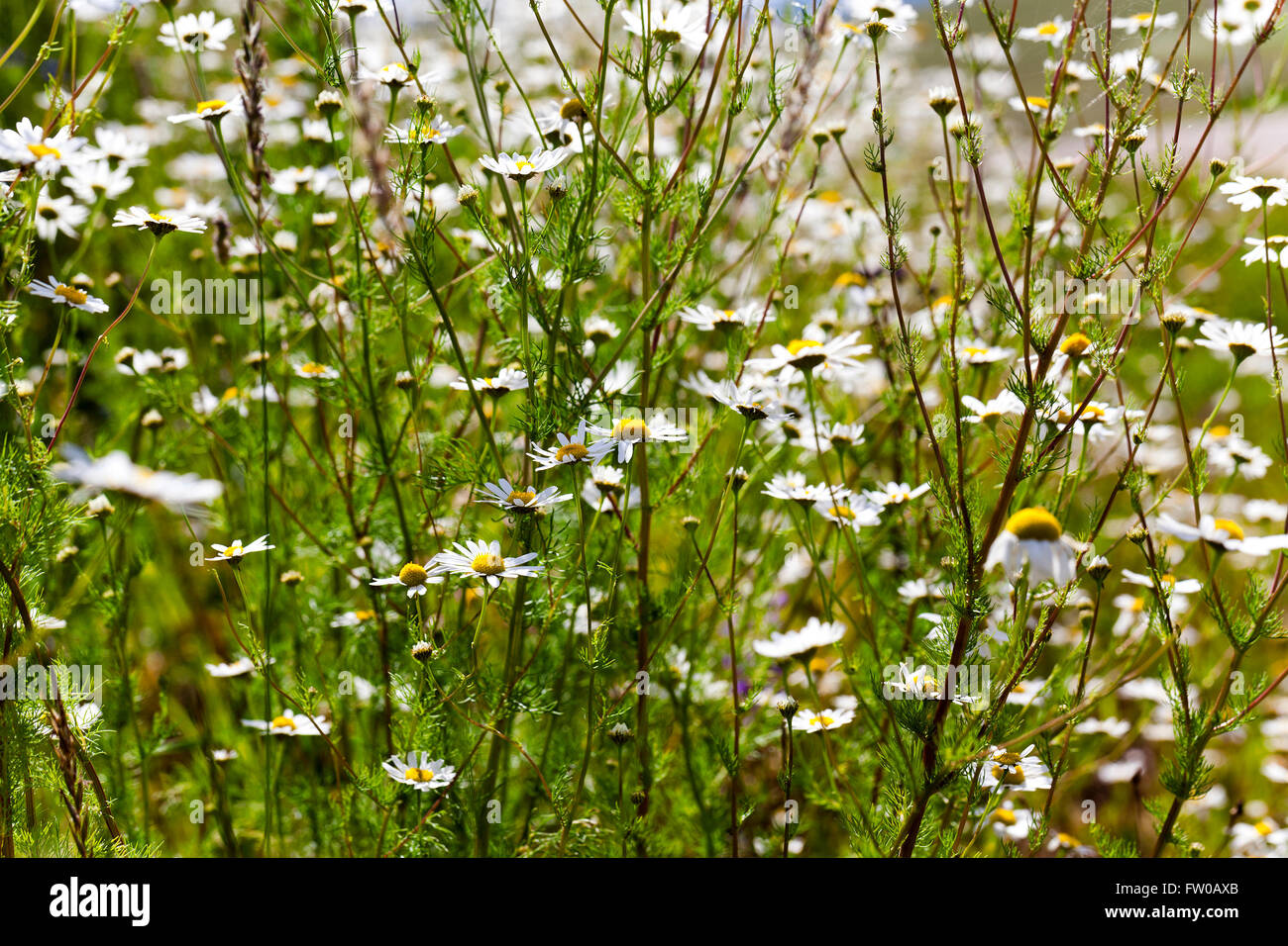 Daisies bloom in the wild (Leucanthemum vulgare Stock Photo - Alamy