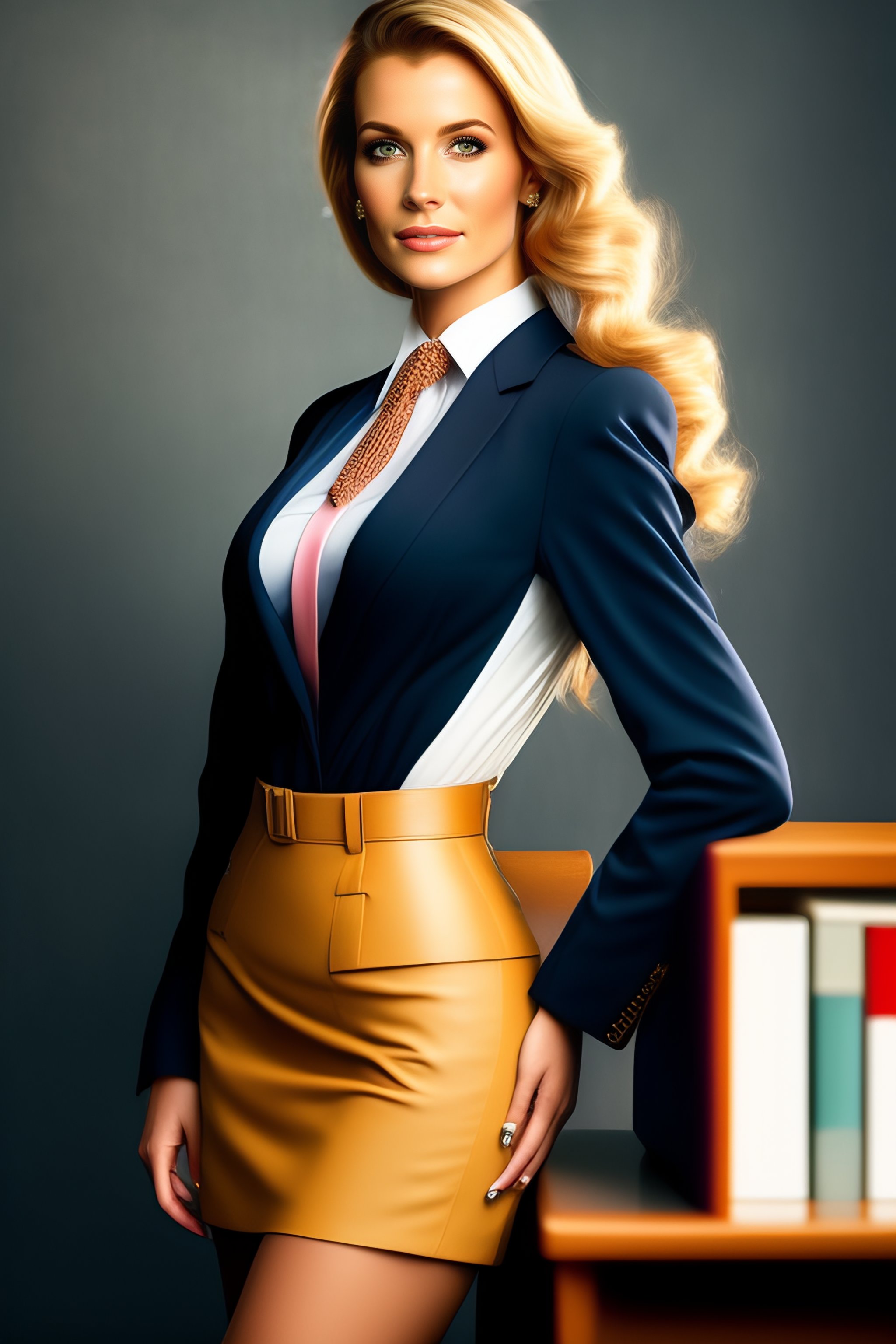 Lexica - Sexy blonde secretary girl in school skirt, bending over