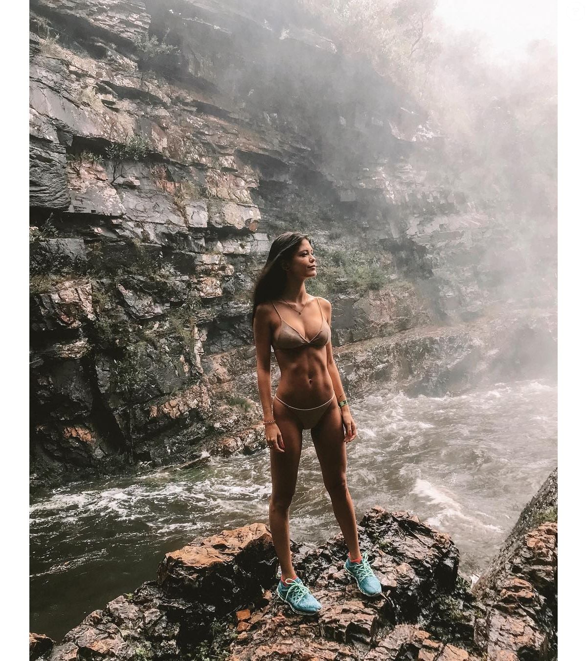 Foto: Vitória Strada de biquíni nude: atriz usou cor neutra em viagem